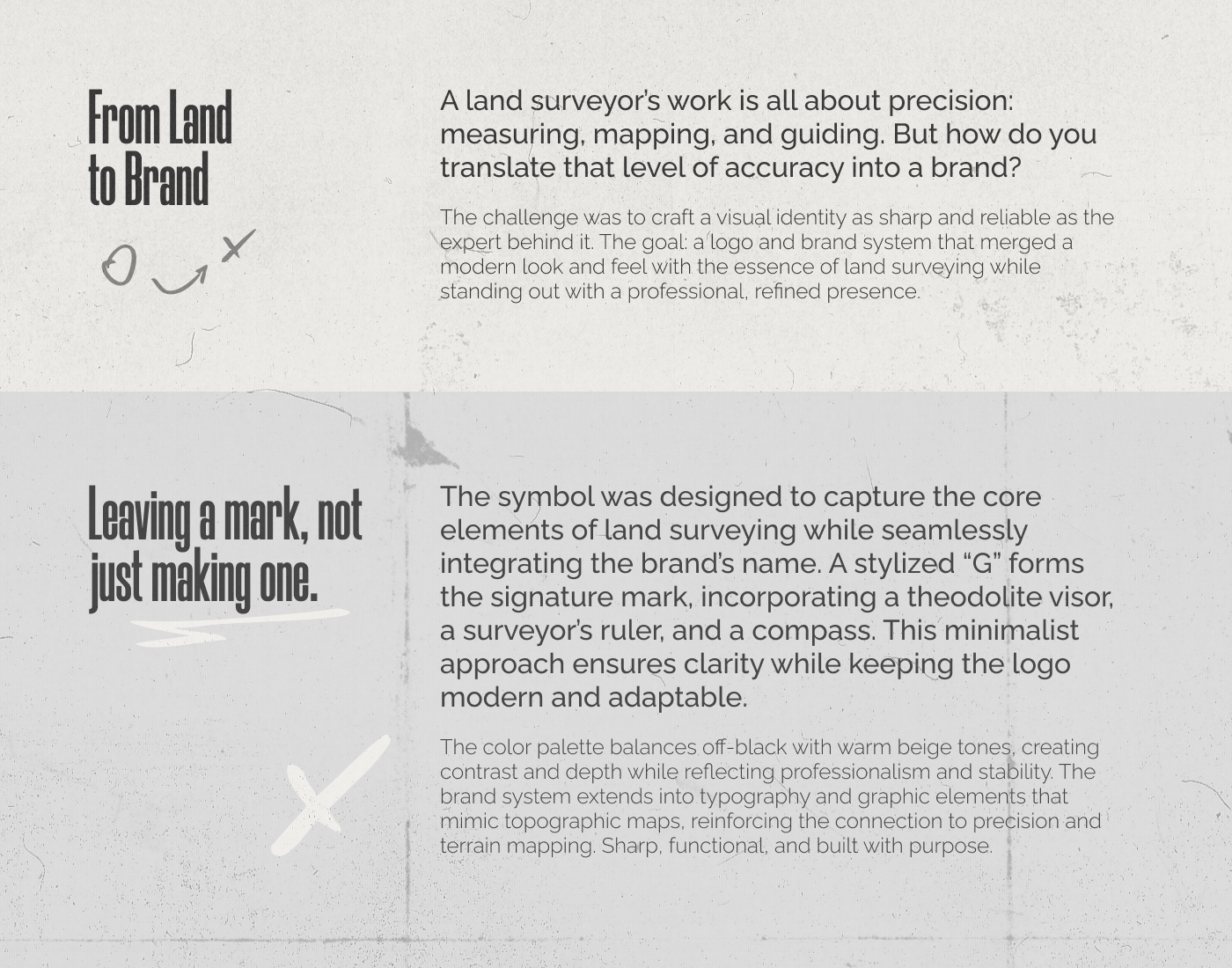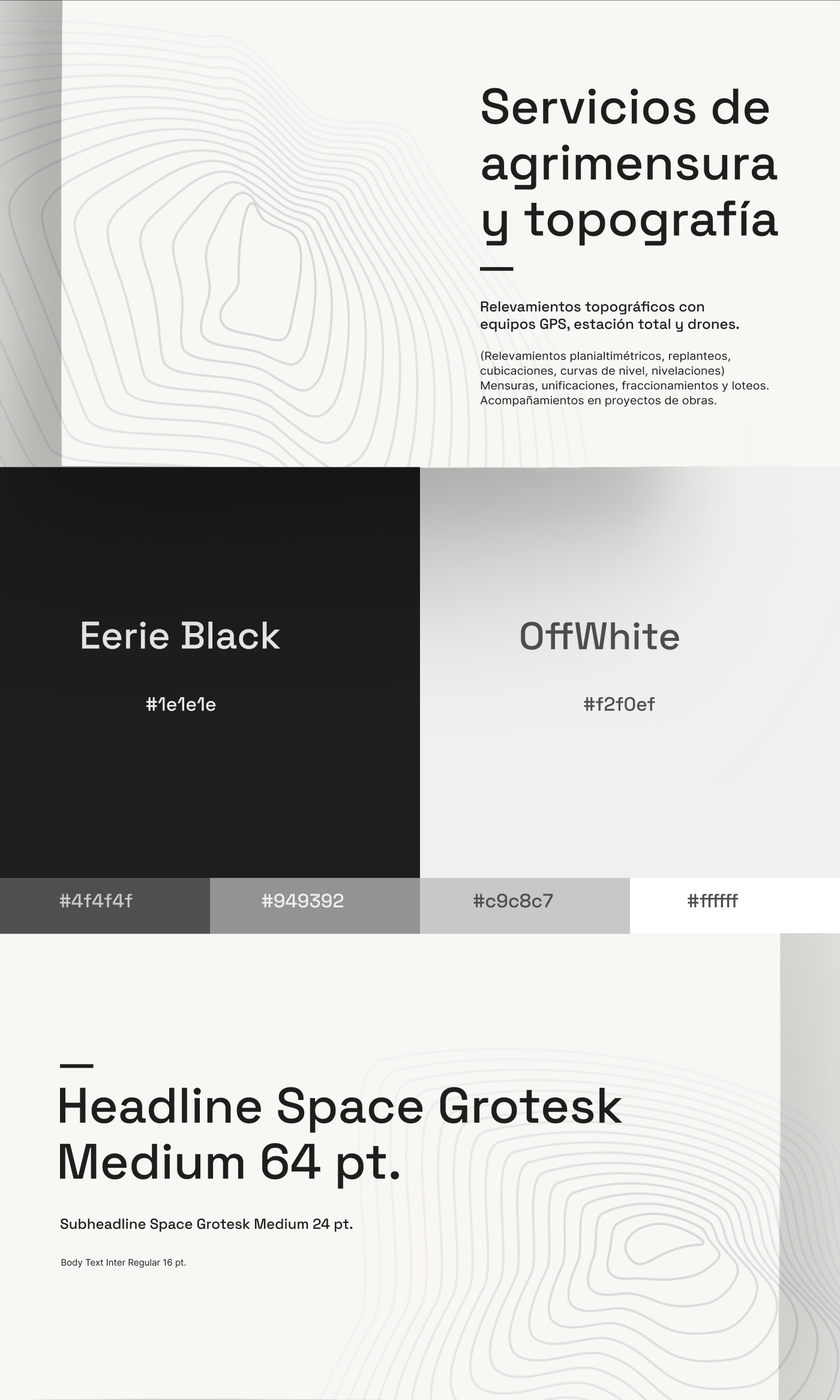 A precision-driven logo and branding system for a land surveyor, combining topographic elements with a modern, minimalist identity.